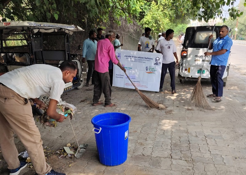 Lucknow: Under the ‘Swachhta Hi Seva 2025’ campaign organized by the Sanitation Section of Babasaheb Bhimrao Ambedkar University, a cleanliness drive was conducted on 26th September in the commercial market area surrounding the university. The campaign saw active participation from the University’s Sanitation In-charge, Dr. Ravi Shankar Verma, along with a large number of sanitation workers, faculty members, and students. During the drive, all participants collectively cleaned the market area, removed garbage, and also raised awareness among the public about maintaining cleanliness. By sweeping and collecting waste, they set an…