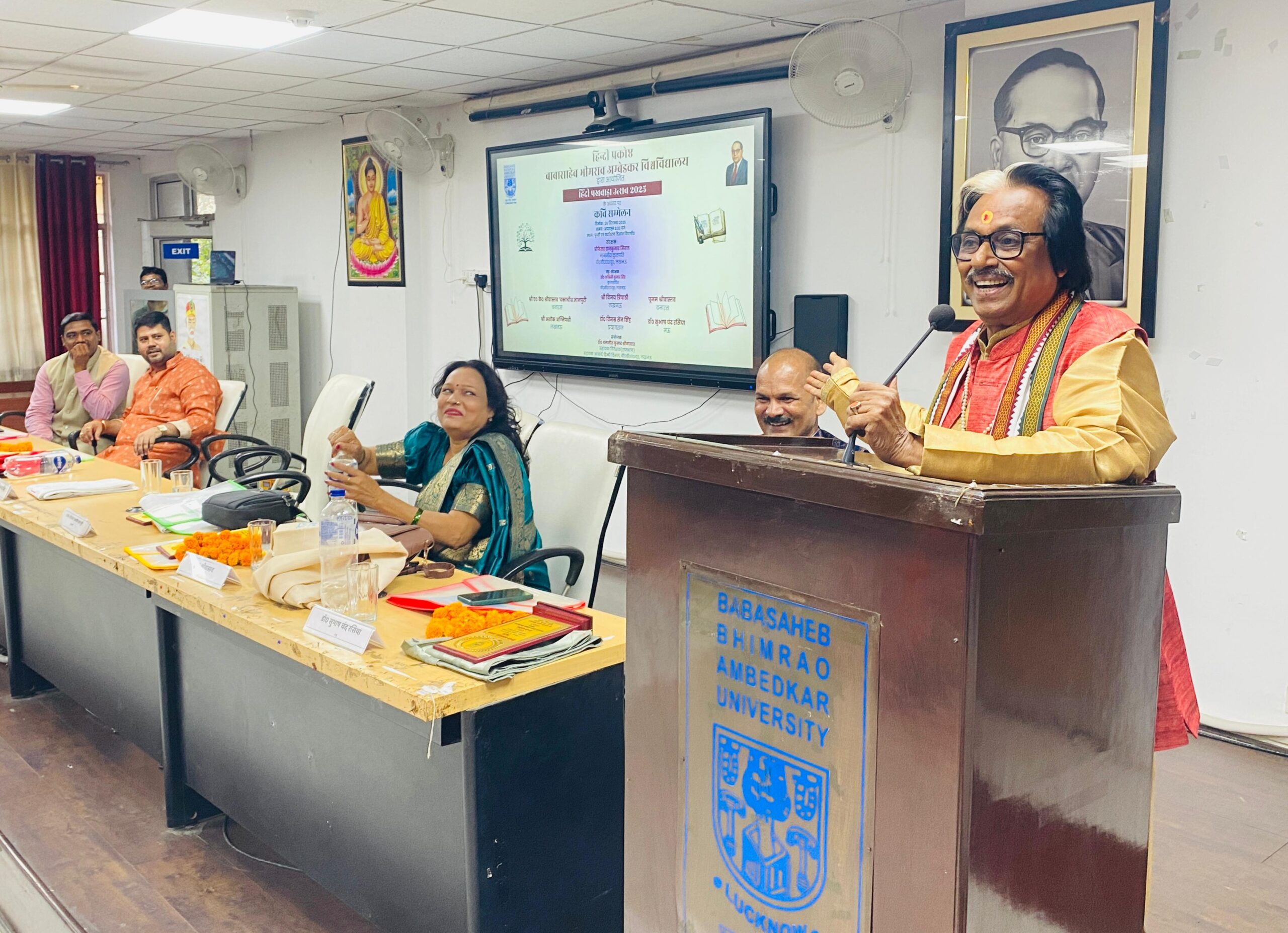 Lucknow: A Kavi Sammelan was organized under the ‘Hindi Pakhwada Utsav 2025’ by the Hindi Cell of Babasaheb Bhimrao Ambedkar University. The program was presided over by Dr. Ashwini Kumar Singh, Registrar. Among the renowned poets who graced the stage were Vijay Tripathi and Ashok Agnipathi from Lucknow, A.K. Srivastava ‘Chakachaundh Gyanpuri’ and Poonam Srivastava from Banaras, Dr. Vinamra Sen Singh from Prayagraj and Dr. Subhash Chandra Rasiya from Mau. Dr. Baljeet Kumar Shrivastava,Assistant Director, Rajbhasha, BBAU and Program Coordinator was also present. The program began with floral tributes offered…