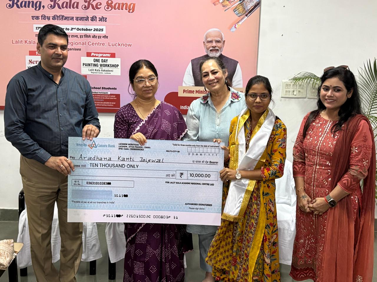 Lucknow: The Lalit Kala Akademi, Regional Centre, Aliganj, under the Ministry of Culture, Government of India, recently hosted an award ceremony for participants of a one-day painting workshop titled “Colors of Developed India, in the Spirit of Art”. The workshop had taken place on September 17, 2025, at the Faculty of Architecture and Planning, Dr. A.P.J. Abdul Kalam Technical University, Lucknow. The award ceremony was inaugurated in the presence of Prof. Mandavi Singh, Vice-Chancellor of Bhatkhande Cultural University, Lucknow, and Dr. Vandana Sehgal, Director, Faculty of Architecture and Planning, along…