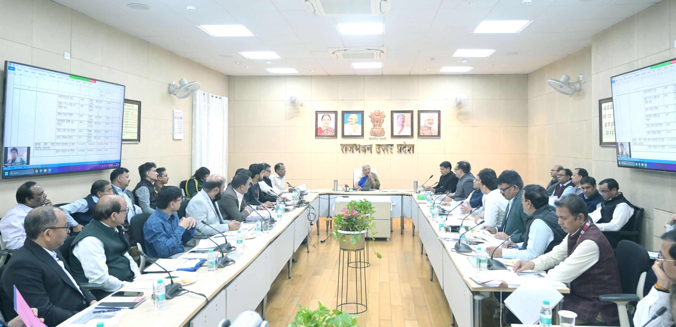 Lucknow: A high-level and detailed review meeting chaired by the Hon’ble Governor of Uttar Pradesh and Chancellor of State Universities, Smt. Anandiben Patel, was held at Raj Bhavan on Monday to assess the progress of ongoing and pending building projects across various state universities. The meeting focused on project timelines, delays, financial allocations, and completion targets, ensuring that infrastructure development in higher education institutions advances with quality and accountability. The meeting was conducted in hybrid mode and included an extensive review of construction works funded under the Centrally Sponsored Scheme…