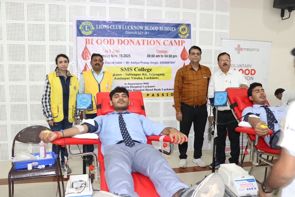 Lucknow: School of Management Sciences (SMS) Lucknow successfully organized a Blood Donation Camp on 19th November 2025, at its campus. The camp was organised in association with Lions Club Lucknow Blood Buddies, Medanta Hospital, and Dr. Ram Manohar Lohia Hospital, Lucknow. The event witnessed an overwhelming response with 96 participants, out of which 76 units of blood were collected, including contributions from students, faculty members, and staff. The event aimed promoting social responsibility, community welfare, and humanitarian values among students and staff. A certificate of appreciation for their humanitarian service…