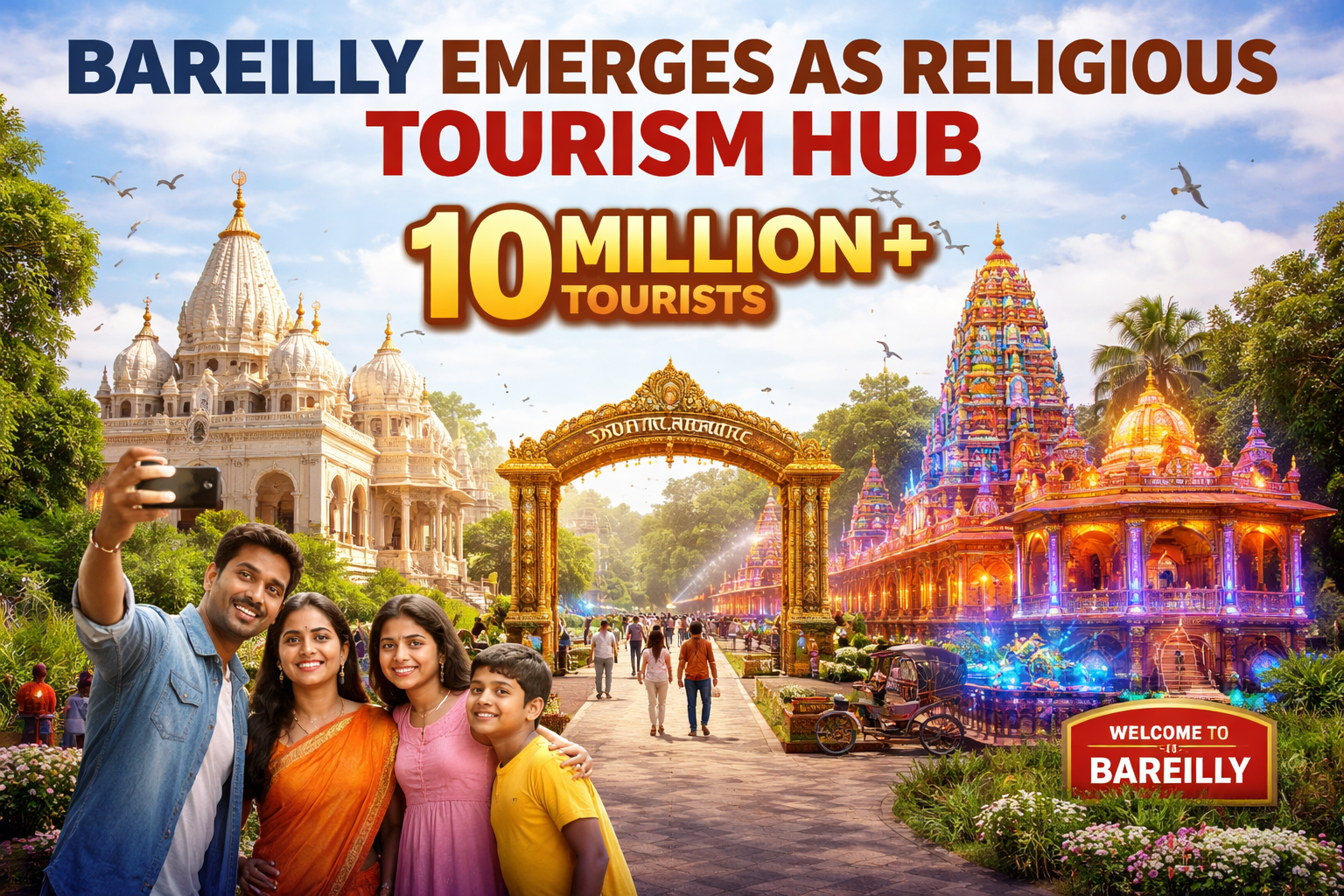 Bareilly: Nath Nagari Bareilly has emerged as a prominent religious tourism destination, with the number of tourists crossing the one-crore mark in 2025, reflecting the growing impact of Uttar Pradesh Chief Minister Yogi Adityanath’s vision to promote religious tourism across the state. According to data released by the Tourism Department, Bareilly received over 10 million tourists in 2025, marking a significant milestone for the district. Tourist arrivals have shown a steady upward trend, increasing from 8.15 million in 2023 to 9.91 million in 2024, and surpassing 10 million in 2025.…