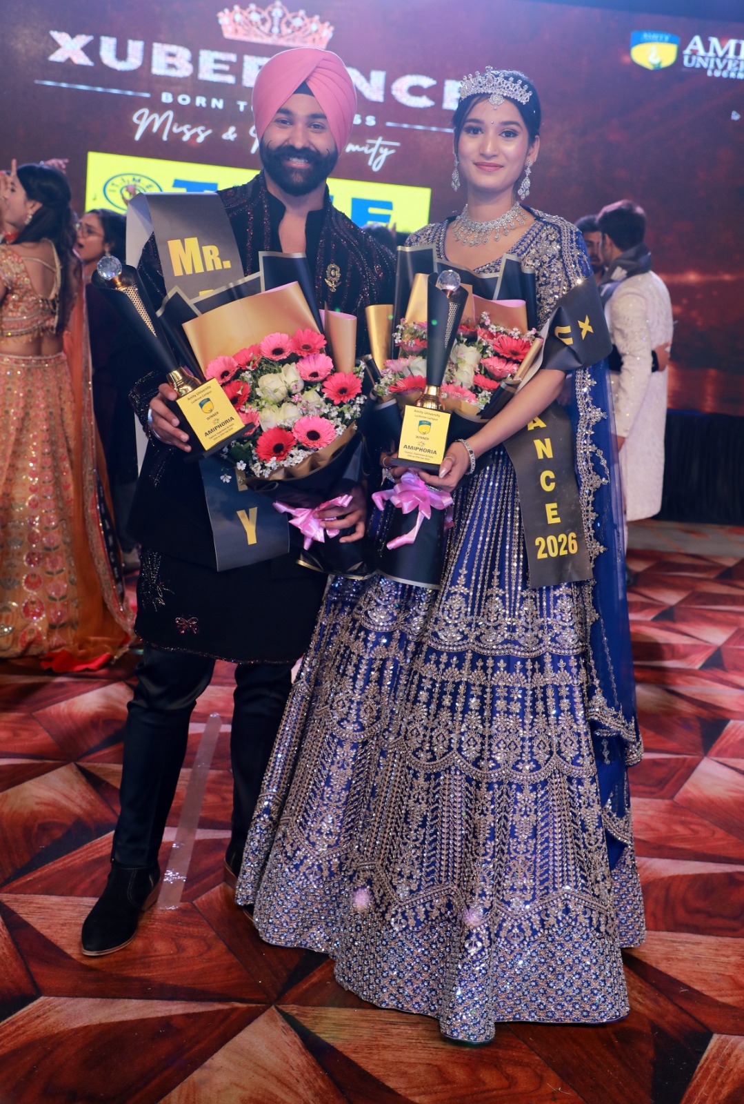 The evening concluded with the much-anticipated “Xuberance Mr. & Ms. Amity” contest. After multiple competitive rounds, Rajveer Singh was crowned Mr. Amity 2026, and Atrika Tiwari won the title of Miss Amity 2026.