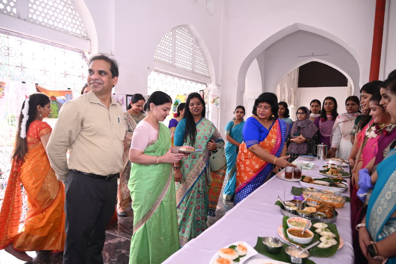 Students captivated the audience with Kuchipudi dance performances, traditional costume displays, PPT presentations, and a quiz competition highlighting the cultural and historical significance of Andhra Pradesh. Two major attractions of the event were the authentic Andhra cuisine served on banana leaves and an art exhibition featuring Andhra-themed paintings and posters, which were highly appreciated by the Vice-Chancellor and guests.