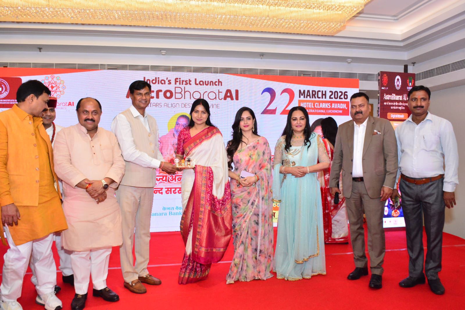 The ceremony also saw the presence of MLC Pawan Singh, Swami Pravaktanand, MLA Balkheda, and Parvinder Singh. Several distinguished astrologers and dignitaries were felicitated by Aparna Yadav, Pawan Singh, Reena Singh, Jaya Prada, and Puja Banerjee.