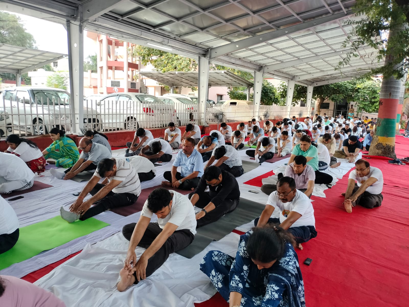Held in the serene premises of the university, the session featured guided yoga practices, with a strong focus on various Surya Namaskar (Sun Salutation) postures and yogic exercises, led by expert instructors. The aim was to raise awareness about the physical, mental, and spiritual benefits of yoga among the public.