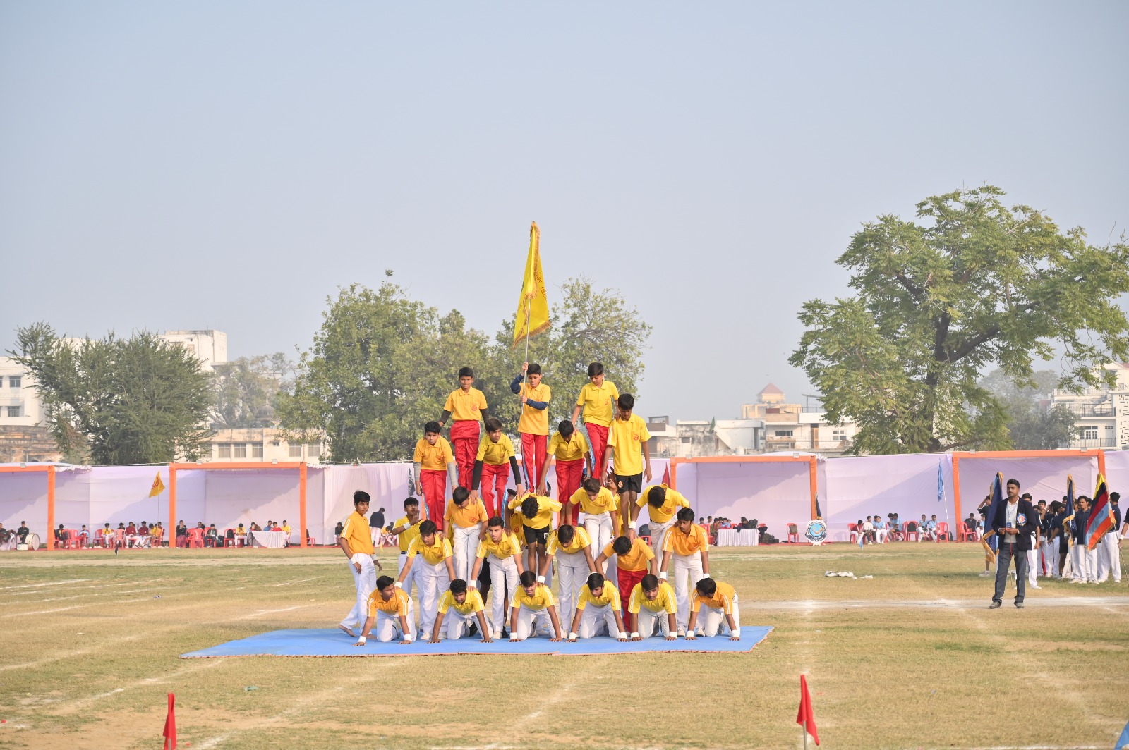 Addressing the gathering, Chief Minister Yogi Adityanath expressed deep admiration for the immaculate March Past and the synchronised Pyramid Drill, commending the exceptional precision, consistency, and collective discipline displayed by the students. He emphasised that physical training and mental rigour are vital instruments in shaping character and leadership, underlining that discipline, physical fitness, and moral strength form the bedrock of nation-building. He urged students to cultivate resilience, self-control, and a strong sense of responsibility towards society and the nation.