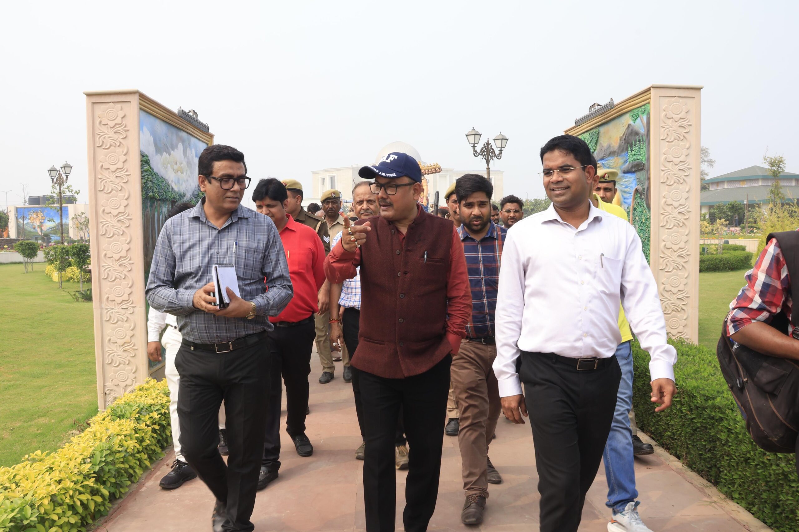 During the visit, the District Magistrate reviewed the progress of construction, beautification work, cleanliness arrangements and security measures at the site. He directed the concerned departments to complete all remaining works within the stipulated timeframe and give the project its final finishing touches.