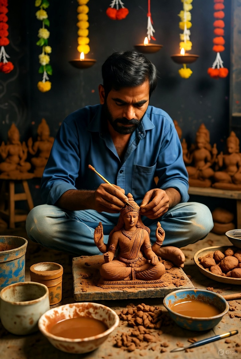 The idol maker’s plight echoes the modern gig worker. Like delivery boys who sacrifice Diwali nights for ₹20 per order, artisans skip festivals to fulfill others’ joy.
