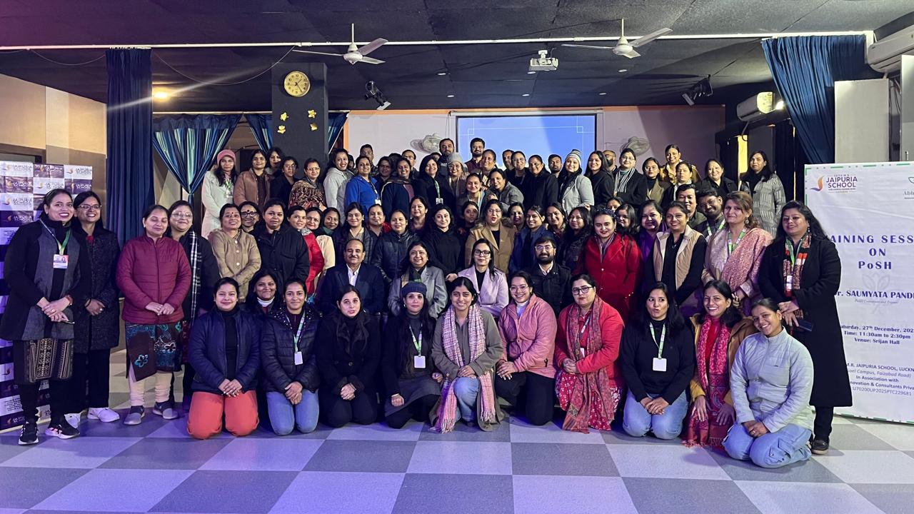 Lucknow: Seth M.R. Jaipuria School, Goel Campus, in association with Abhivriddhi Innovation & Consultants Pvt. Ltd., successfully conducted a comprehensive workshop on the Prevention of Sexual Harassment (PoSH) Act, 2013 for all its staff members. The initiative aimed at fostering a safe, inclusive, and respectful workplace while strengthening awareness about legal rights and responsibilities.