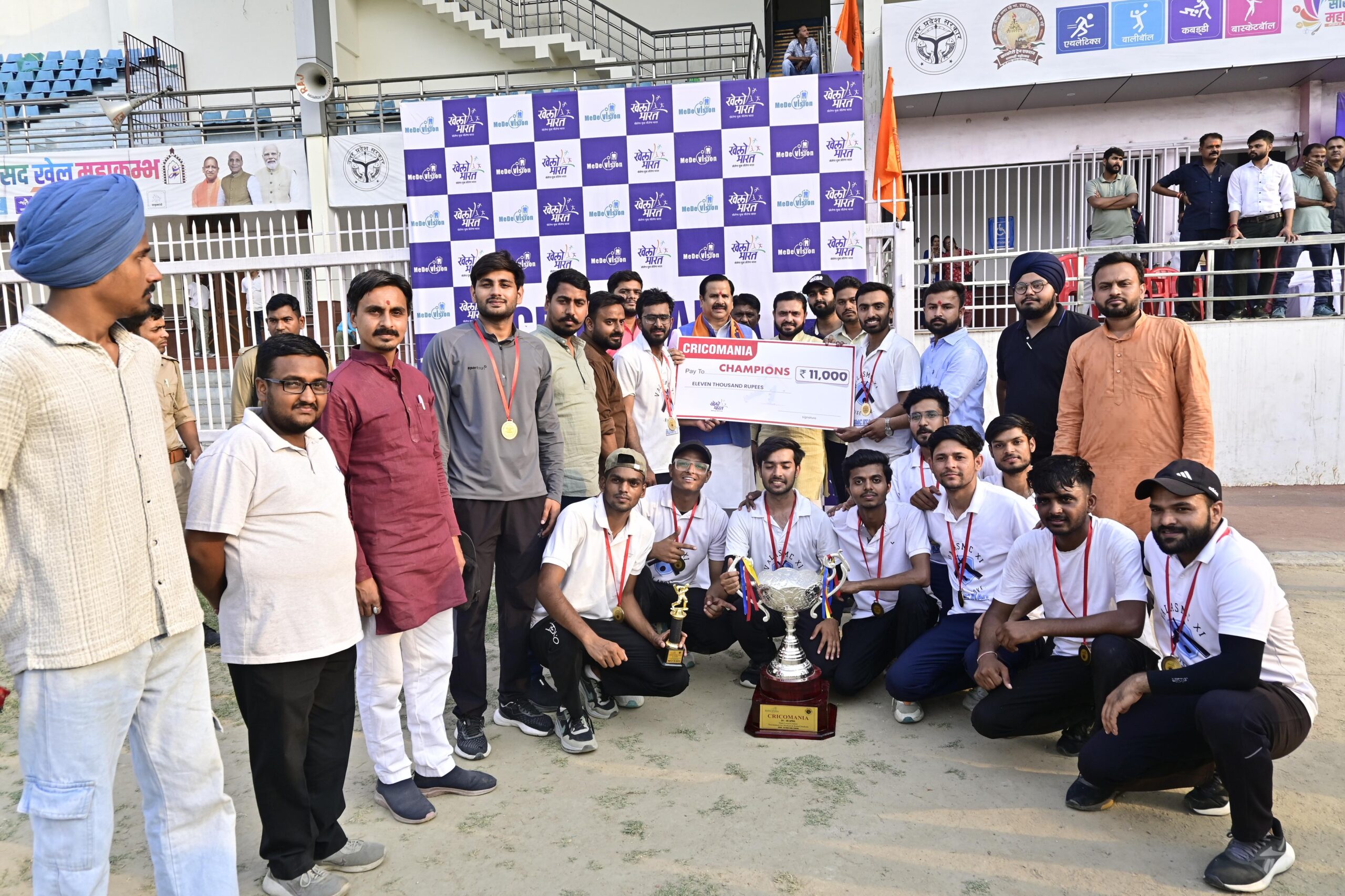 The winning team received a cash prize of ₹11,000 and a trophy, while the runner-up team was awarded ₹5,100 and a trophy.