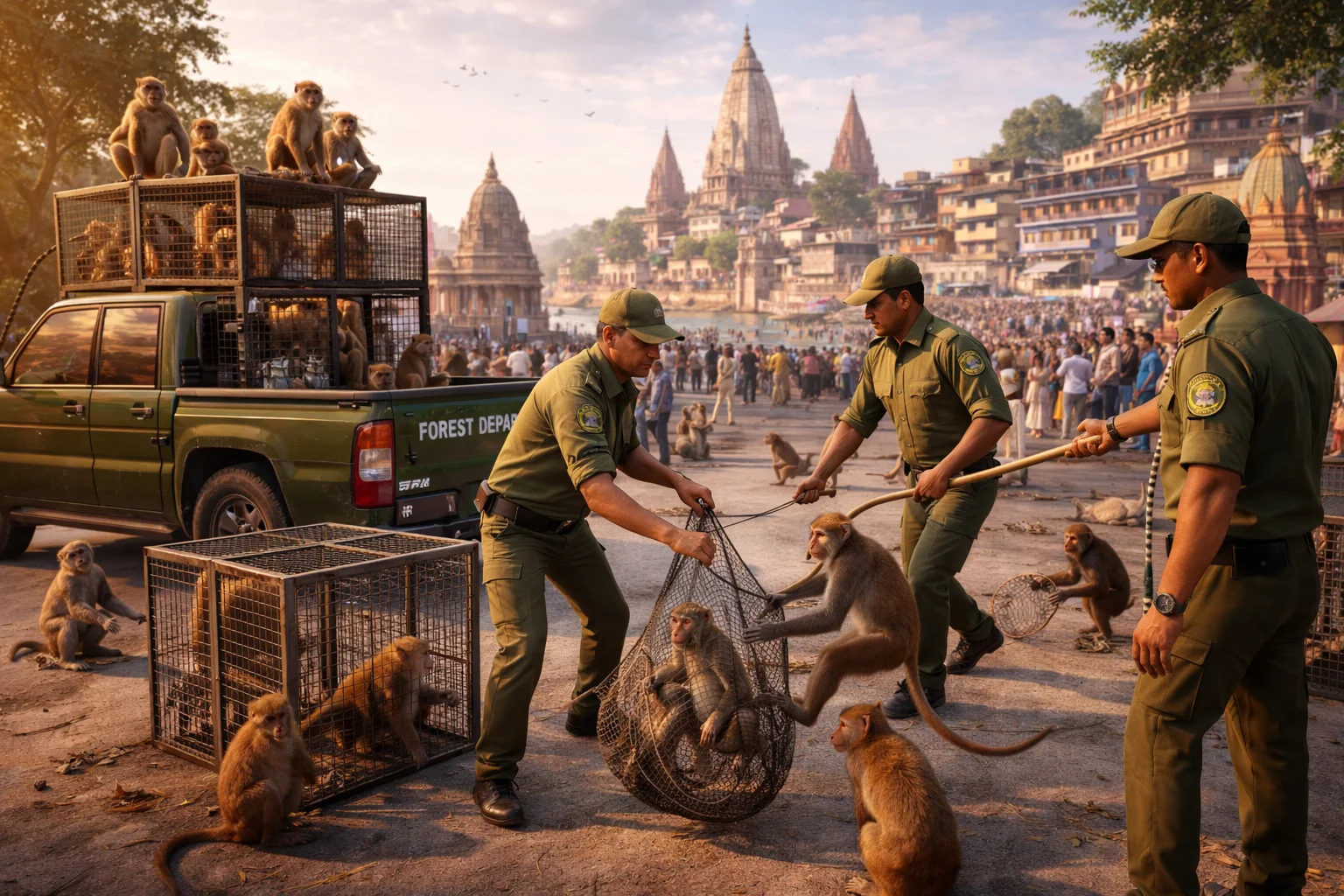 Varanasi: In a significant move to address the growing menace of monkeys in the city, the Uttar Pradesh government has transferred full responsibility for their management from the municipal corporation to the Forest Department. The decision is expected to bring greater efficiency and expertise to tackling the long-standing issue.