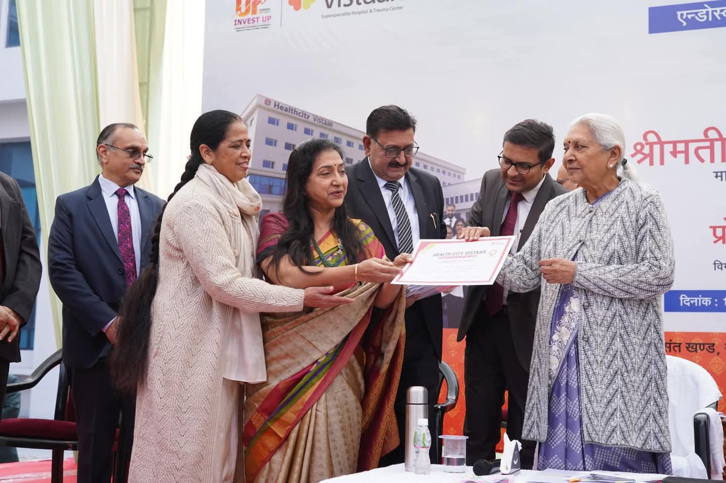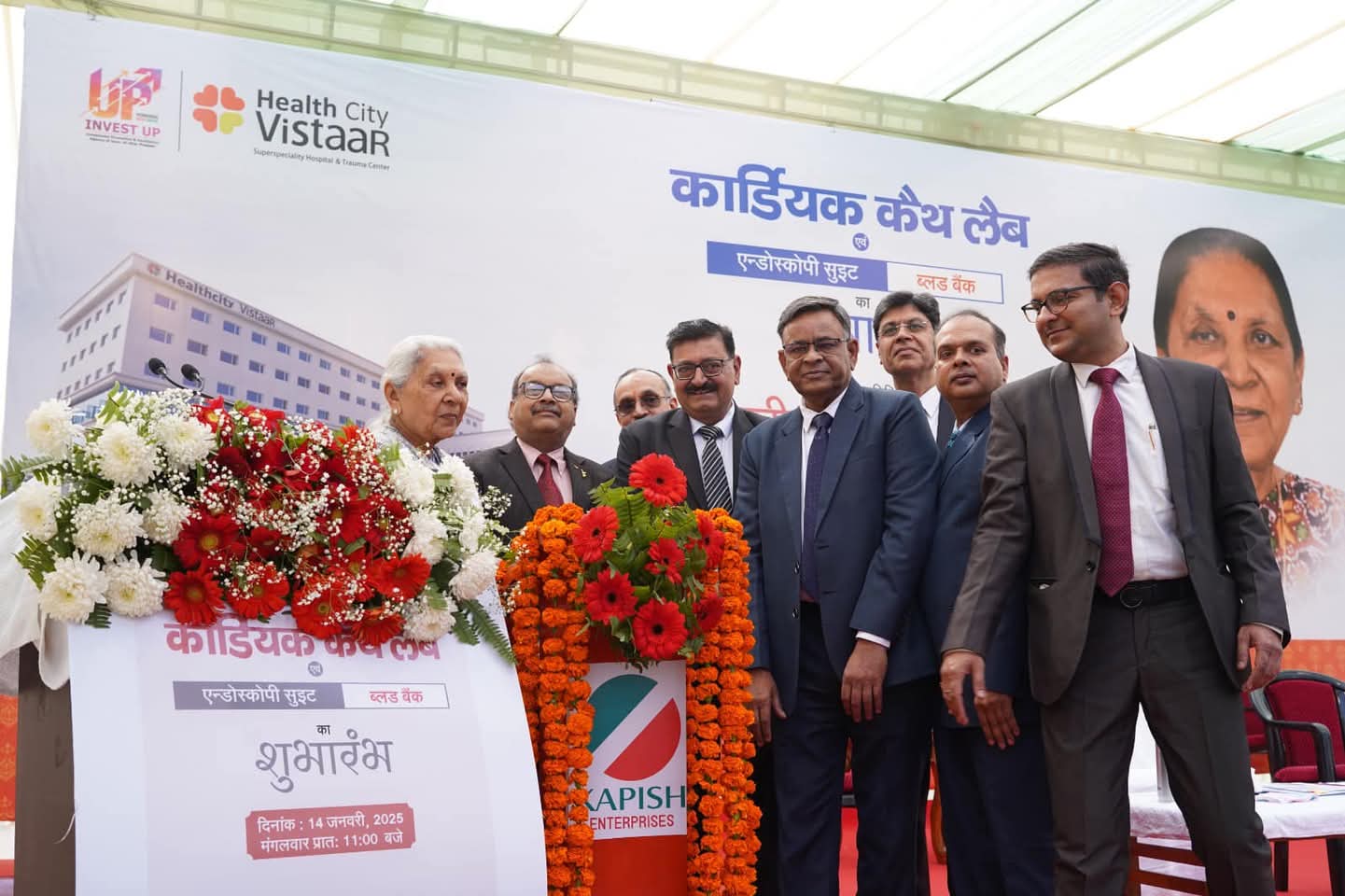 Lucknow: Uttar Pradesh Governor Anandiben Patel inaugurated the Cardiac Cath Lab, Endoscopy Suite, and Blood Bank at Health City Vistaar Hospital, Gomtinagar, Lucknow, emphasizing the significance of affordable and advanced healthcare services. The event, held on Makar Sankranti, saw the Governor extending festive greetings to the attendees and highlighting the critical role of healthcare in society.