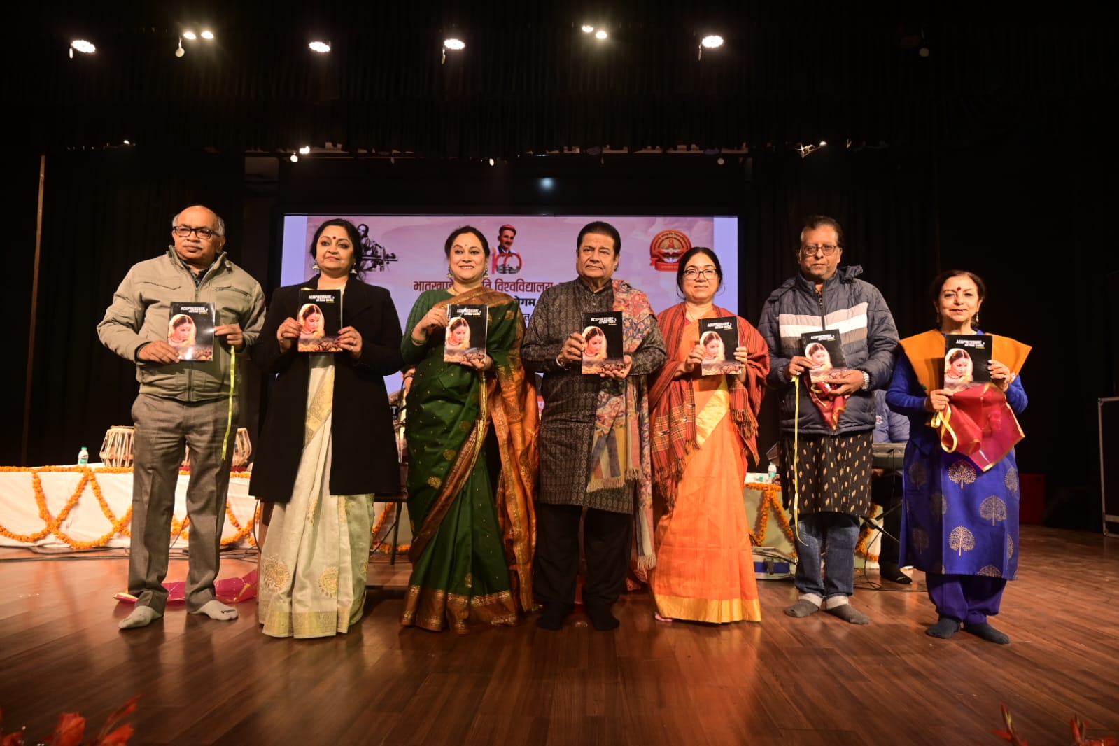The highlight of the evening was the soulful and spiritually uplifting performance by Padma Shri Anup Jalota, a distinguished alumnus of Bhatkhande Sanskriti Vishwavidyalaya and a global icon of devotional music. Beginning with the bhajan “Aisi Laagi Lagan, Meera Ho Gayi Magan,” he went on to present a series of deeply moving compositions including “Achyutam Keshavam Ram Narayanam,” “Ram Aayenge,” “Kaun Kehta Hai Bhagwan Aate Nahin,” “Itni Shakti Humein Dena Data,” and “Bolo Ram Ram Ram.” He also engaged students in a collective musical interaction, creating an atmosphere of devotion, reverence, and musical excellence. His performance proved to be an unforgettable experience for music lovers and a rare, inspiring learning opportunity for students and research scholars to closely observe the nuances of expression, bhava, and stage presentation in Indian music.