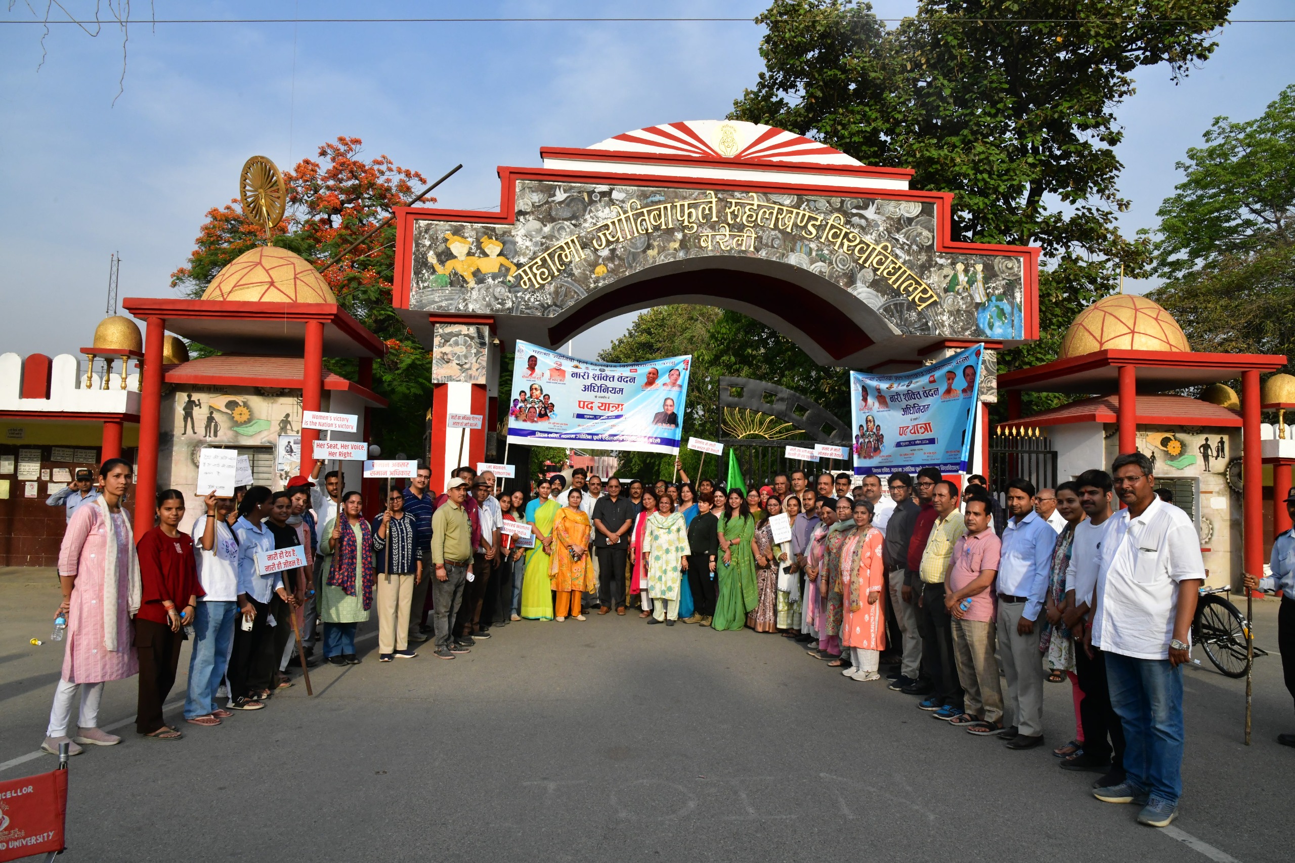 Bareilly: A massive human chain and awareness march were organised at Mahatma Jyotiba Phule Rohilkhand University in support of the Nari Shakti Bandhan Adhiniyam (Women’s Reservation Bill), highlighting the call for greater political representation of women.
