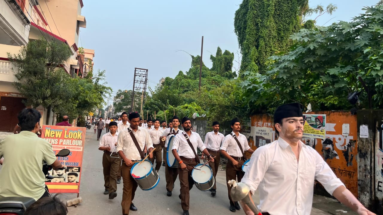 Lucknow, India – As part of the centenary celebrations of the Rashtriya Swayamsevak Sangh (RSS), a grand procession was organized from Parshuram Basti in Ramnagar block, West Lucknow, drawing participation from hundreds of volunteers. The procession was warmly received by local residents along the route, reflecting widespread community support.