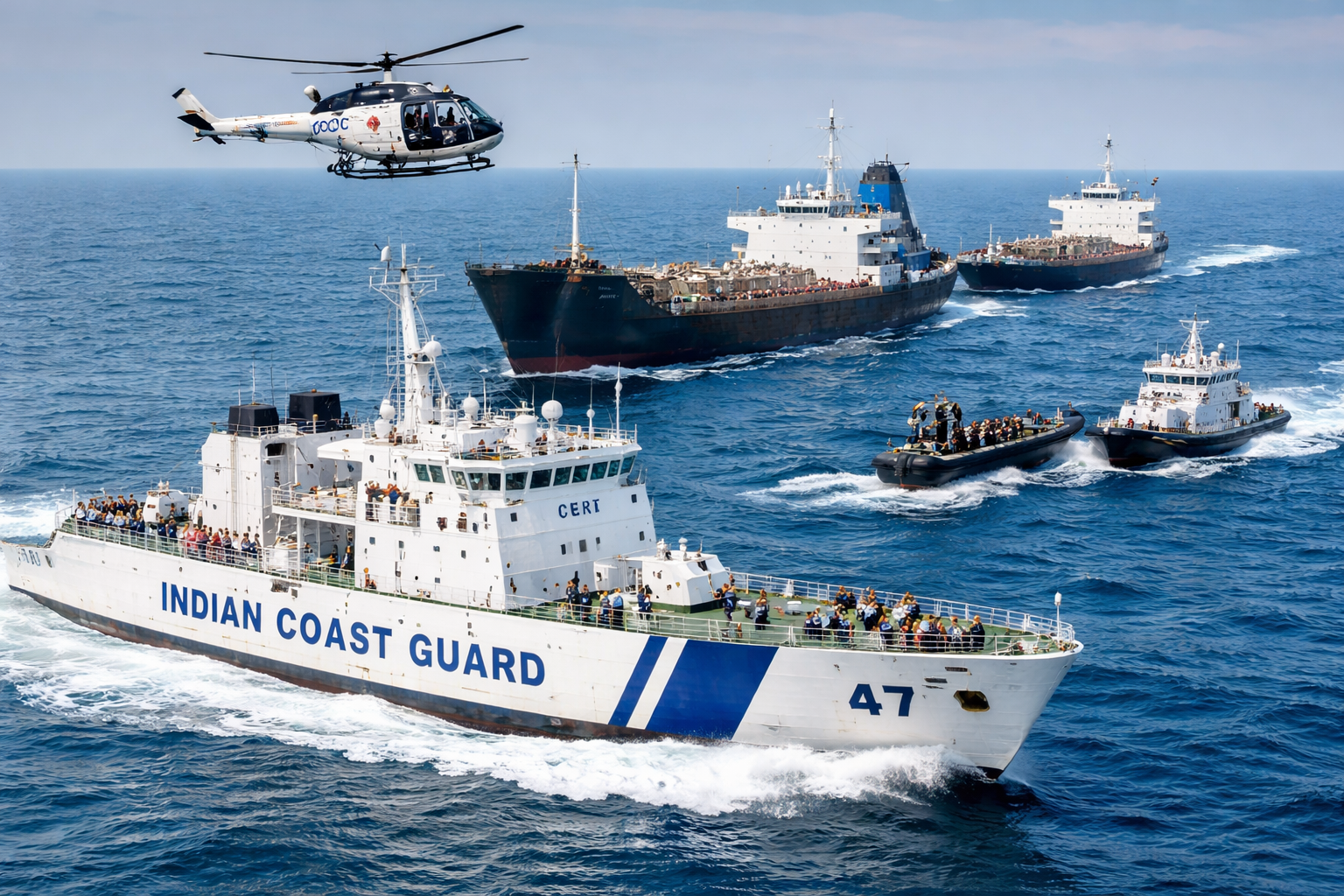New Delhi: In a major blow to transnational maritime crime, the Indian Coast Guard (ICG) successfully busted an international oil smuggling racket through a meticulously planned sea-air coordinated operation conducted on 05–06 February 2026. The operation led to the interception of three suspect vessels involved in the illegal transfer of oil and oil-based cargo originating from conflict-affected regions.
