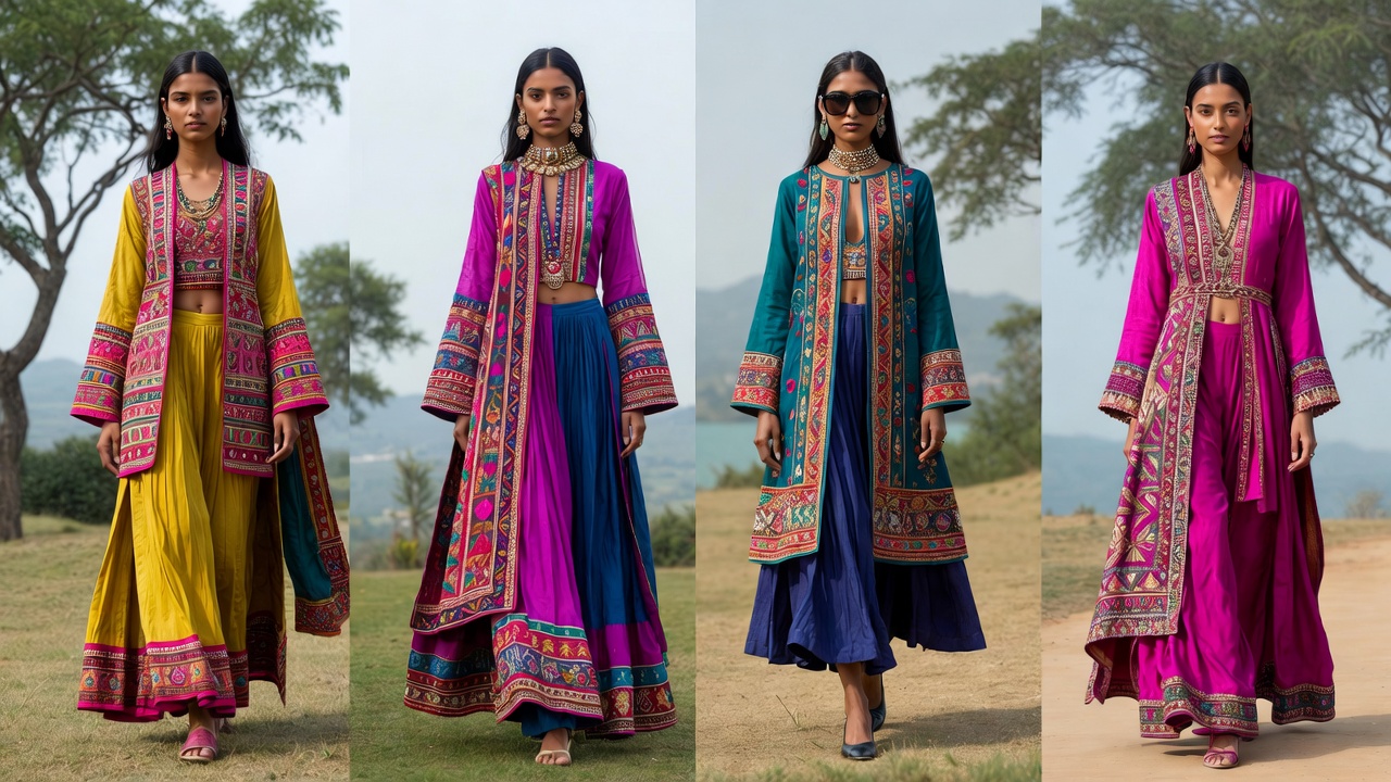 Minimalism persisted in subtle styles, with hand-block prints and organic fabrics offering understated elegance. Gender-fluid designs—unisex kurtas and Nehru jackets—promoted inclusivity, while net fabrics and mesh added edgy, contemporary appeal.