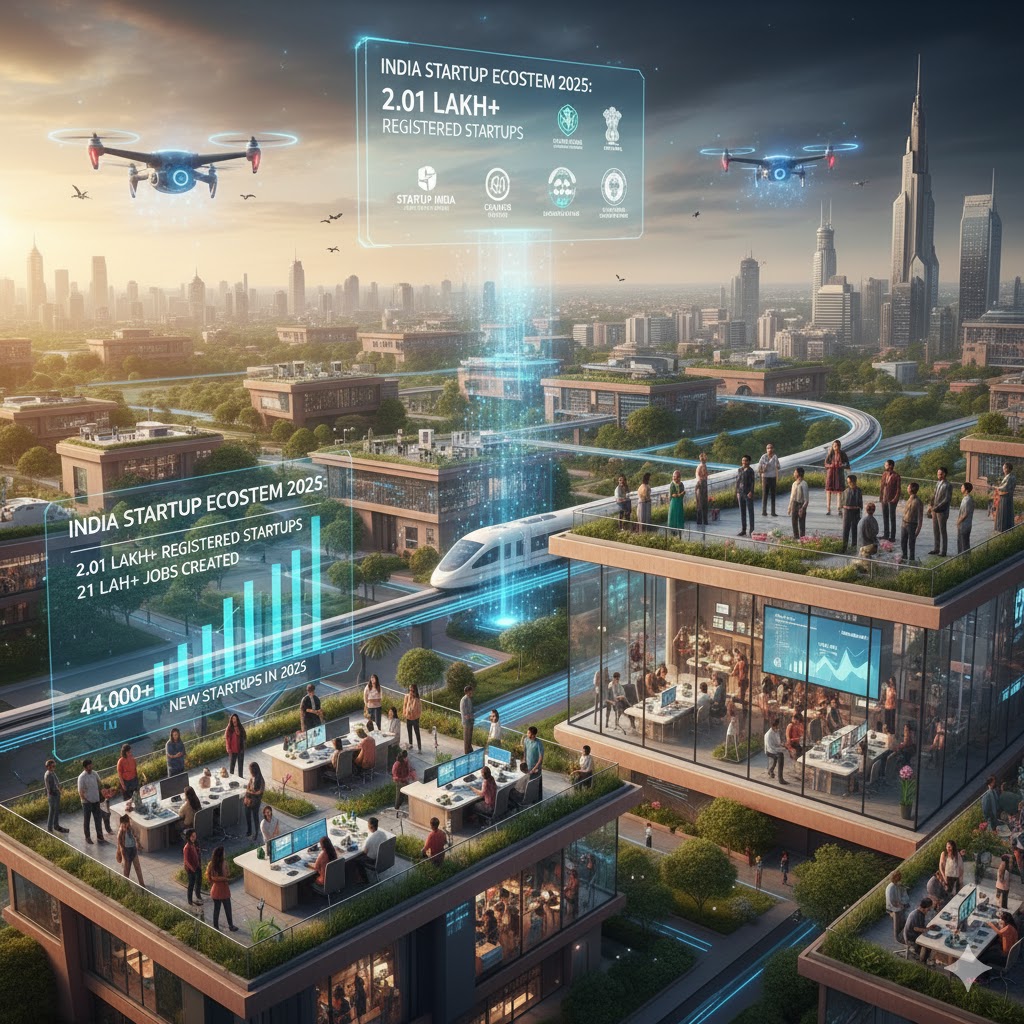 New Delhi: India’s startup ecosystem continued its rapid expansion in 2025, emerging as a key driver of innovation, employment and economic momentum. According to data from the Ministry of Commerce and Industry, the country now has over 2.01 lakh registered startups recognised under the Startup India initiative, collectively generating more than 21 lakh jobs across sectors.