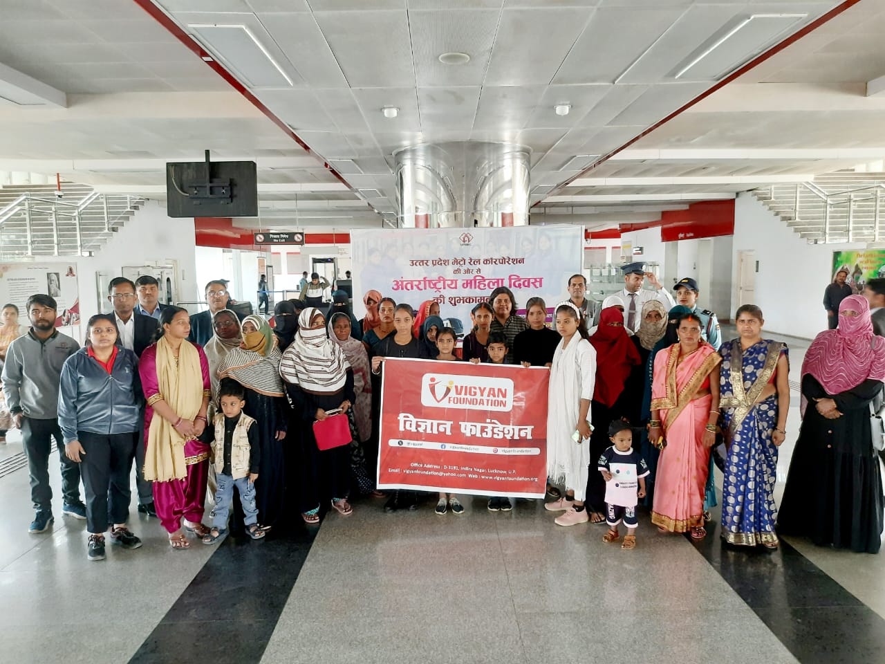 Lucknow: To mark International Women’s Day, the Uttar Pradesh Metro Rail Corporation (UPMRC) organized a special metro ride for underprivileged women and adolescents associated with the NGO Vigyan Foundation. A total of 25 women and 5 adolescents traveled across the metro corridor from Munshipulia to CCS Airport, with some experiencing metro travel for the first time. Before the journey, participants were briefed on the metro’s safety measures for women.