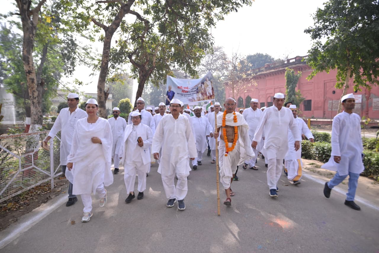 The commemorative Padyatra (foot march) commenced at 8:30 AM from Jan Bhavan, Lucknow. Participants marched through the city, reaching the Lucknow University campus by 9:40 AM.