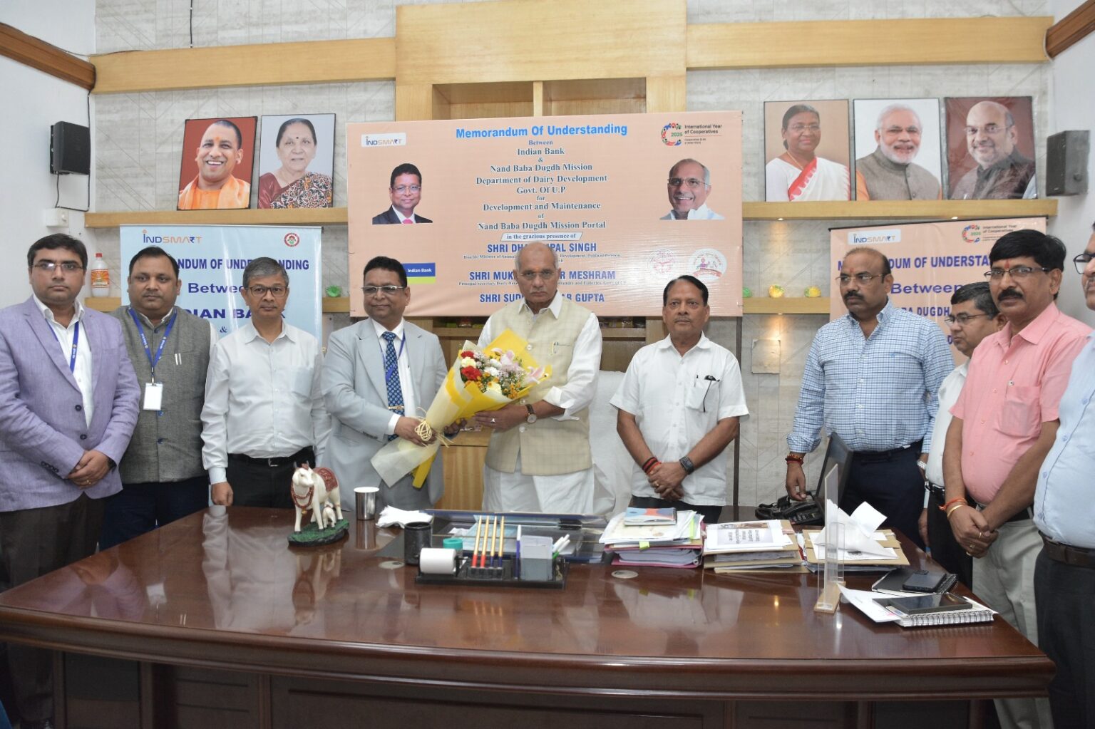Lucknow: In a significant step towards digital transformation in the dairy sector, Nandbaba Dairy Mission and Indian Bank have signed a Memorandum of Understanding (MoU) for the development and operation of the Nandbaba Dairy Mission Portal. The MoU was formally executed between the Dairy Commissioner and Mission Director of Nandbaba Dairy Mission and the Zonal Manager of Indian Bank.