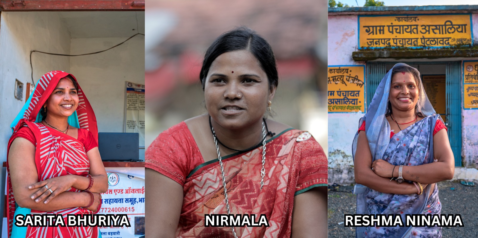 Access to skills, increased awareness, and local leadership has changed the lives of Sarita Bhuriya, Nirmala and Reshma Ninama