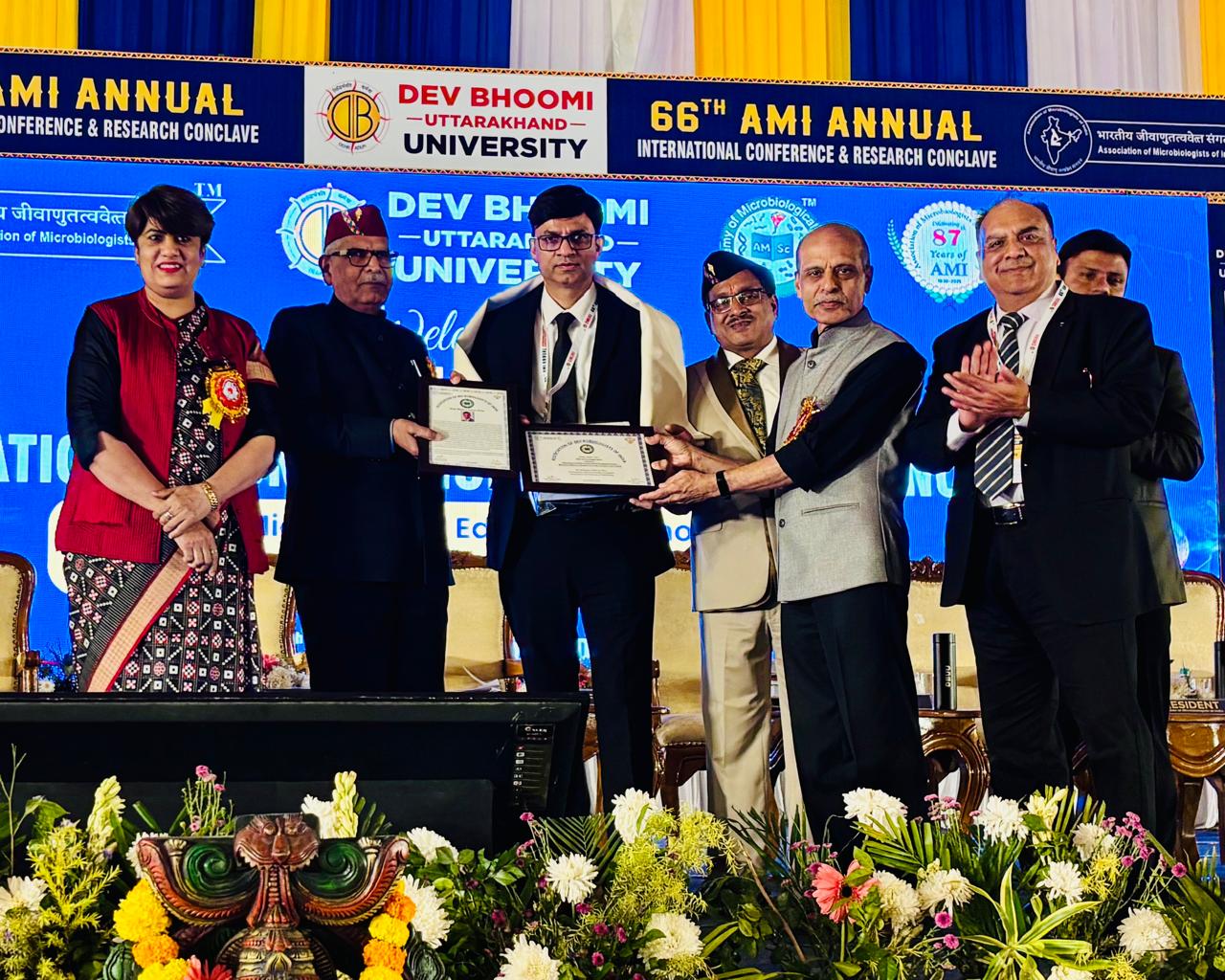 Lucknow: Prof. Naveen Kumar Arora, Department of Environmental Science, Babasaheb Bhimrao Ambedkar University, Lucknow was conferred with the prestigious Fellow of Academy of Microbiological Sciences by the Association of Microbiologists of India (AMI) at the 66th Annual Conference of Association of Microbiologists of India and International Conference on Next-Gen Microbiology Education, Innovation and Research for Economy, Energy and Environment held at Dehradun, Uttarakhand. Association of Microbiologists of India. AMI is the oldest and most prestigious association of microbiologists. It was established in the year 1938. The AMI has contributed immensely towards the development of microbiology in the country. There are 5526 life members of this society from all over the country.