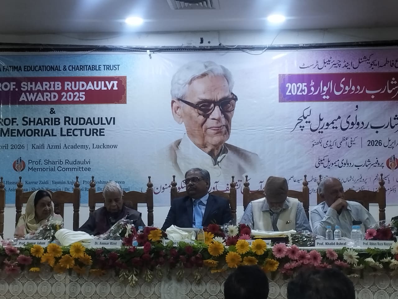 Organised under the aegis of the Prof. Sharib Rudaulvi Memorial Committee, the event took place at the All India Kaifi Azmi Academy, Nishatganj, and also featured the Prof. Sharib Rudaulvi Memorial Lecture. The award was presented by Justice Syed Qamar Hasan Rizvi, while Dr. Moosa Raza read out the citation highlighting Prof. Fatmi’s contributions to Urdu criticism and research.