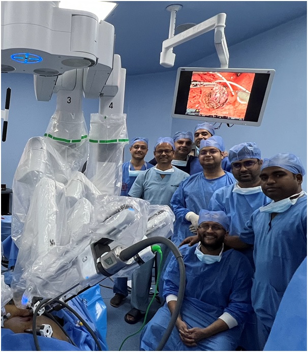 According to Prof Uday Pratap Singh, Traditionally, bladder tumors of this nature are managed via the transurethral, open or laparoscopic approach, requiring creation of pneumoperitoneum, extensive dissection around and behind the urinary bladder, and working dangerously close to vital structures. In this particular case, the tumor was in close proximity to the right ureter, placing it at significant risk of injury during conventional surgery.