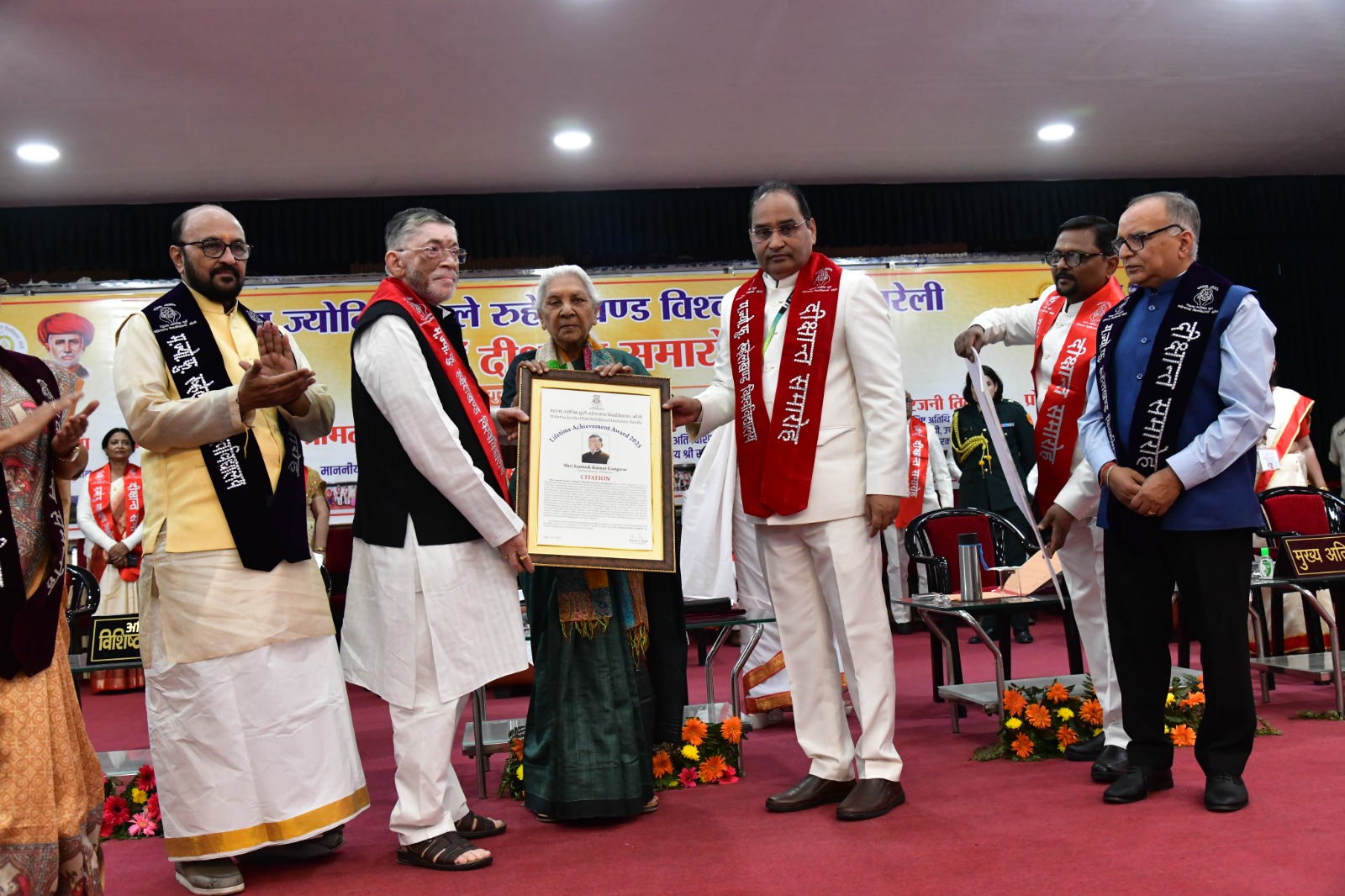 Addressing the gathering, Governor Anandiben Patel said the introduction of the Lifetime Achievement Award by the university is a commendable initiative that will inspire generations of students and academicians. She added that it is a matter of pride that the first recipient of this prestigious honour is Shri Santosh Kumar Gangwar, who has made remarkable contributions in public life and brought glory to the university.