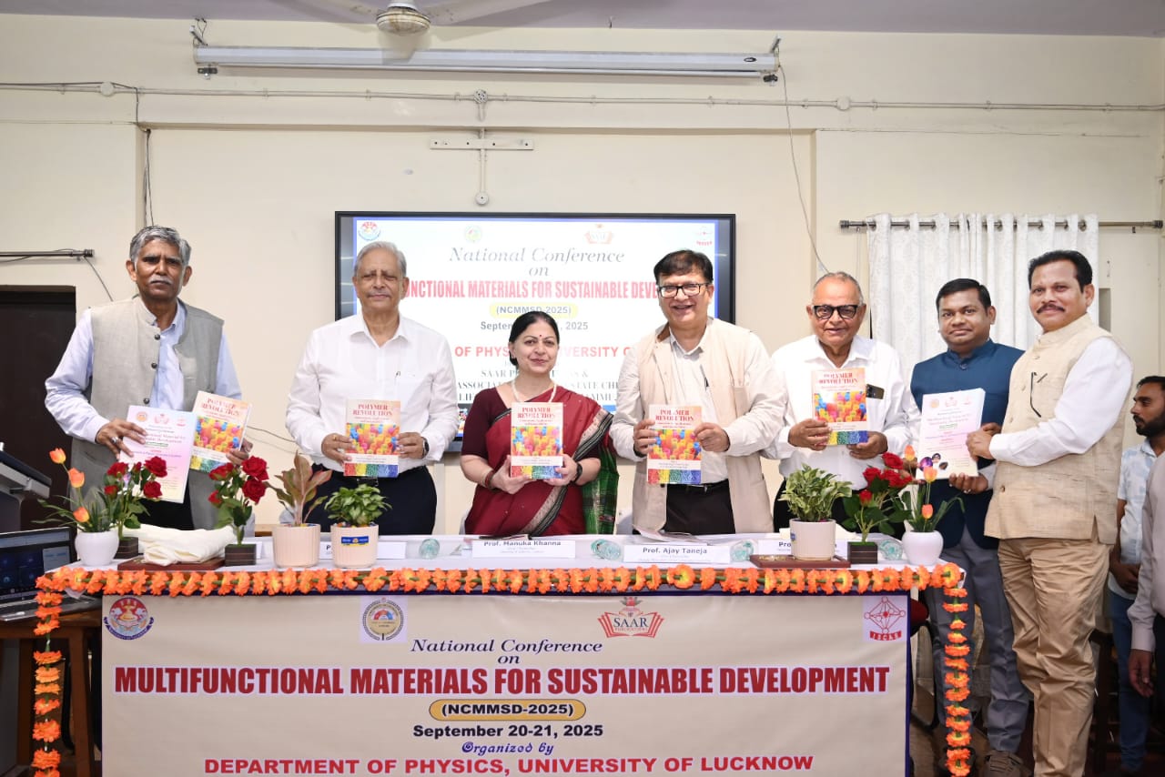 Lucknow – The Department of Physics, Lucknow University, inaugurated a two-day conference today on “Multifunctional Materials for Sustainable Development”, jointly organized by Lucknow University, ISCAS, and SAAR Publications. The event received support and financial assistance from the Indian Bank Regional Office, Hazratganj, Lucknow, which also felicitated the distinguished guests.