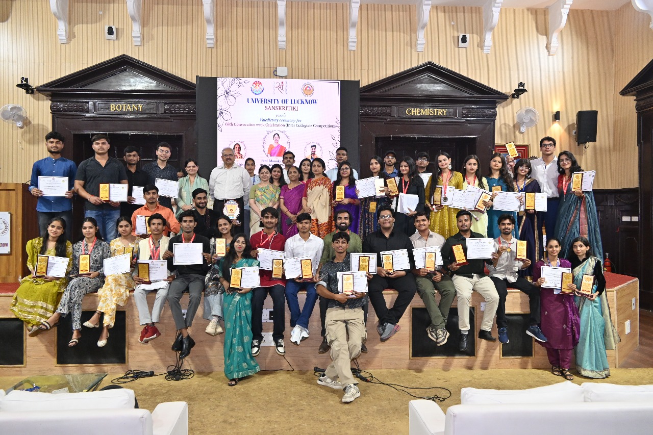 Lucknow: The University of Lucknow successfully organized a grand felicitation ceremony for the participants and winners of various competitions held during its 68th Convocation Week, which took place from September 1 to 10, 2025. The event was held at the Malviya Hall on November 3 under the patronage of Vice-Chancellor Professor Manuka Khanna and the able guidance of Professor Anchal Srivastava, Director, Cultural Affairs.