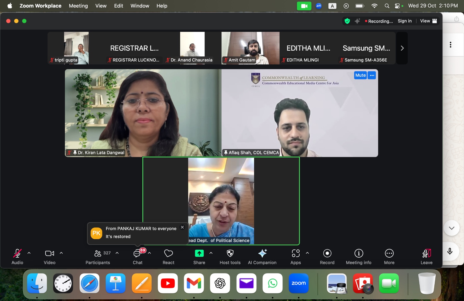 Lucknow: The University of Lucknow, in collaboration with SWAYAM@Lkouniv and the Commonwealth Educational Media Centre for Asia (COL-CEMCA), New Delhi, inaugurated a five-day Online Faculty Development Programme (FDP) on “Empowering Higher Education Institutions in Technology-enabled and Blended Learning” on October 29, 2025. The programme will run till November 3, 2025, from 2:00 PM to 5:00 PM daily.