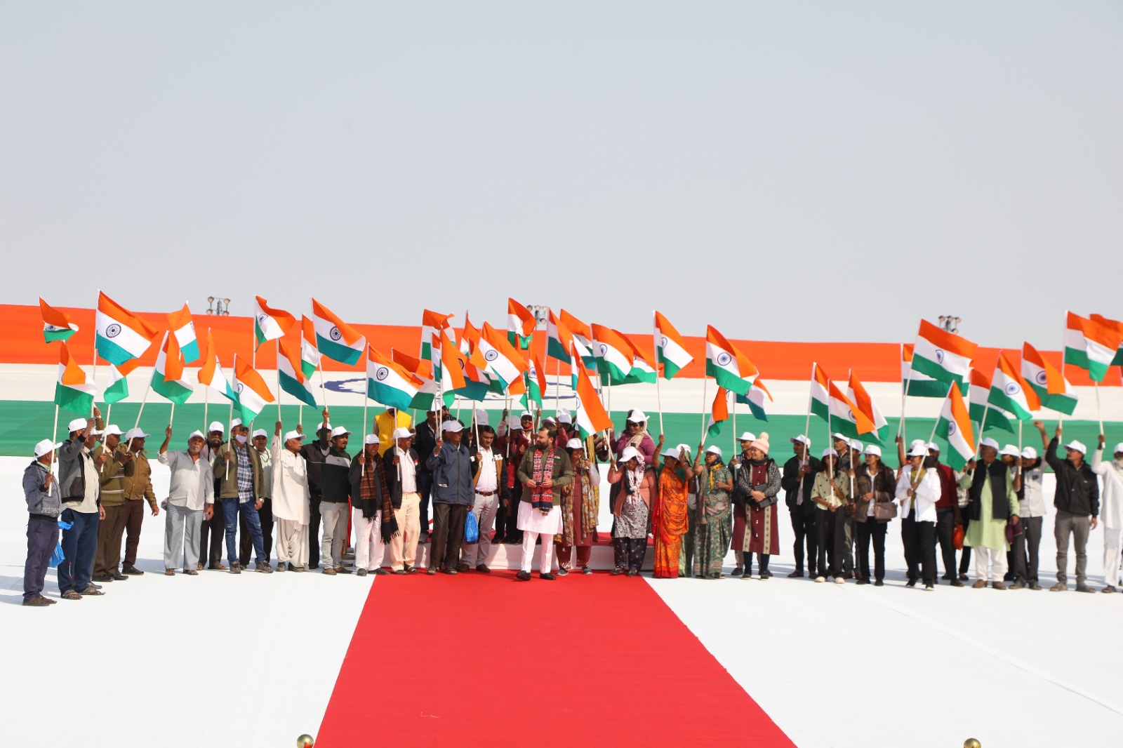 The monumental Tricolour was displayed at Dhordo, transforming the vast white salt desert into a powerful symbol of national unity, self-reliance, and India’s cultural heritage. The event was organised by the Khadi and Village Industries Commission (KVIC) under the Ministry of Micro, Small and Medium Enterprises, Government of India.