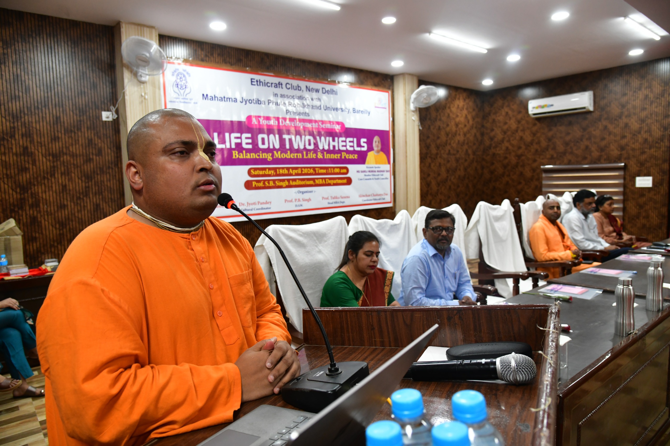 Bareilly: A motivational youth development seminar on the theme “Life on Two Wheels: Balancing Modern Life and Inner Peace” was organised at Mahatma Jyotiba Phule Rohilkhand University under the joint aegis of Ethicraft, New Delhi, and the university. The event aimed to guide students on achieving a balanced lifestyle amid modern challenges.